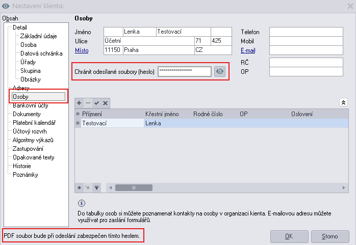 Heslo můžete nastavit také k vybrané Osobě:
